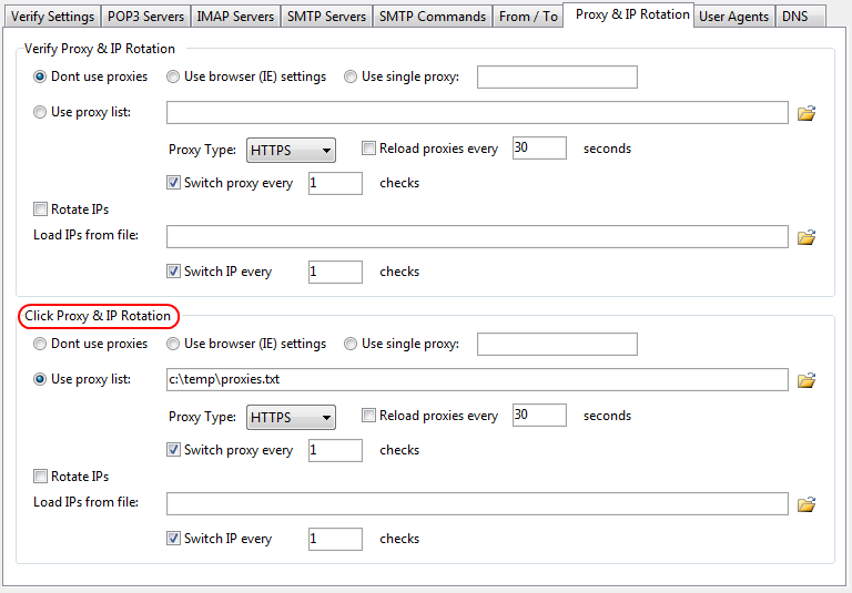You can specify the proxy and IP rotation settings that will be used to visit the links.