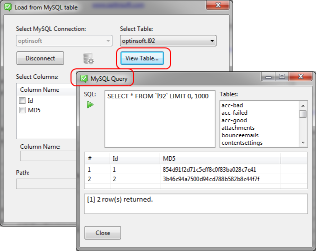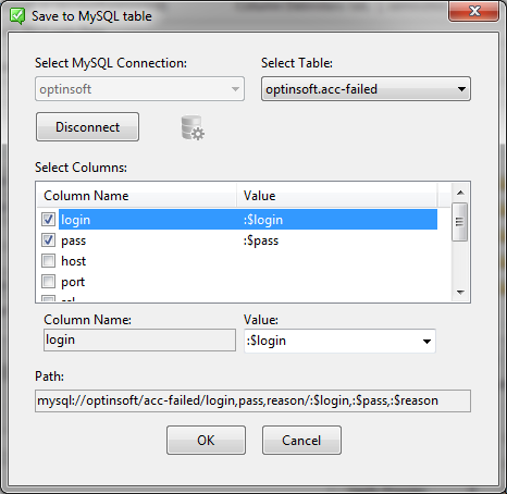 You can use “Load from MySQL table” and “Save to MySQL table” dialogs to fill MySQL paths (Pic.2,3).\