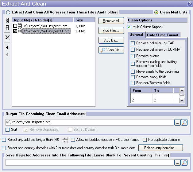 You can specify a file in which you want to keep the rejected addresses. Leave it blank to prevent keeping the rejected addresses.