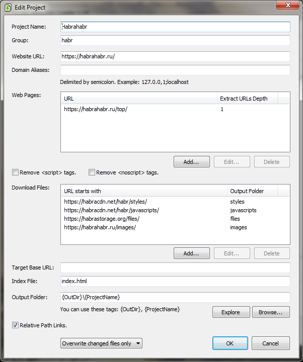 Websites Loader will change the links from these domains by replacing the domain part with the path to the Output Folder, or with the Target Base URL (if one is specified).