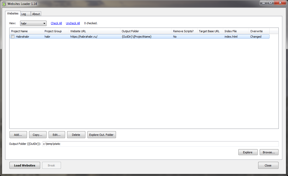 Websites Loader is a web sites download utility.
