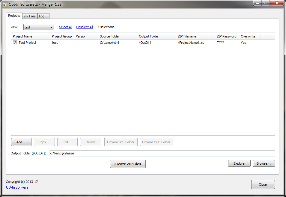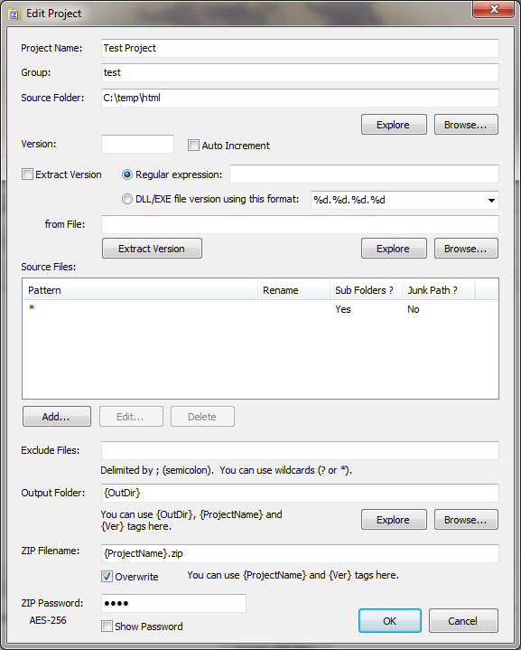Output Folder. Path to the output directory for the ZIP Project. You can use these tags: