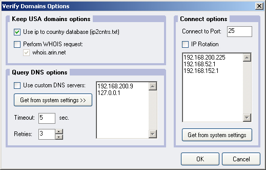 You can edit additional options by pressing right-arrow button below the Try Connect check box. Verify Domains Options dialog box will appear. Here you are able to: