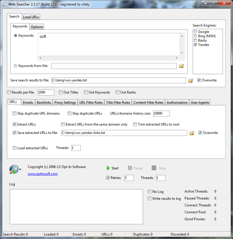 Web Searcher is a web scraping tool. It allows to search in Google, Bing, Baidu or Yandex for keywords and extract various data from web pages and sites.